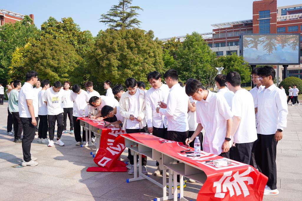 随后开展的“青春印记”签名留念活动中,笔锋游走间,毕业生们在横幅上郑重签下姓名,一个个充满个性的签名成为青春与母校联结的特殊符号。