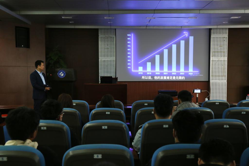 讲座上,戴陆对目前大学生的就业市场形势进行了分析介绍,着重强调了如何选择“不后悔”的就业单位、如何提升个人就职成功率以及就业前在校的储备攻略等问题,帮助同学们明晰个人发展方向,了解就业市场,做好职业生涯规划,找到适合自己的岗位。