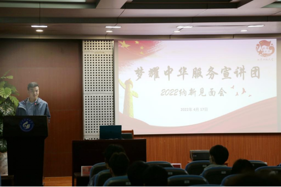 点击:为了激发同学们参与社会实践的积极性,树立“在实践中奉献”的观念,4月17日-18日,金年会官网梦耀中华服务宣讲团于学院楼报告厅举办2022年纳新见面会。金年会官网团委老师苗成旭,梦耀中华服务宣讲团2019级队长杨忠源、刘璐璇出席会议。